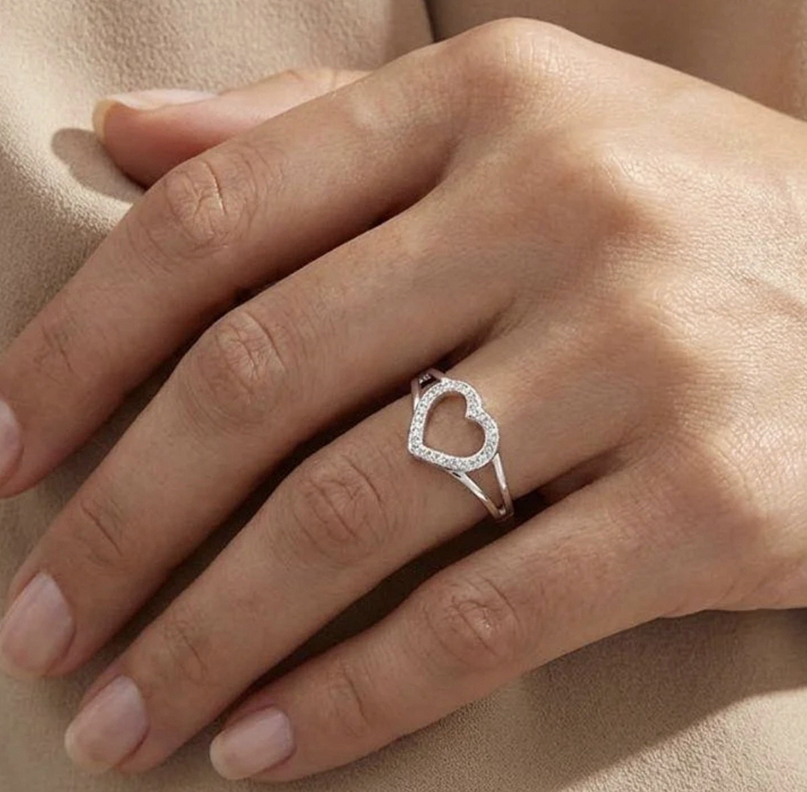 Um anel delicado e moderno feito em prata 925 com design de corações vazados. Ideal para quem busca um acessório com charme e leveza no dia a dia.