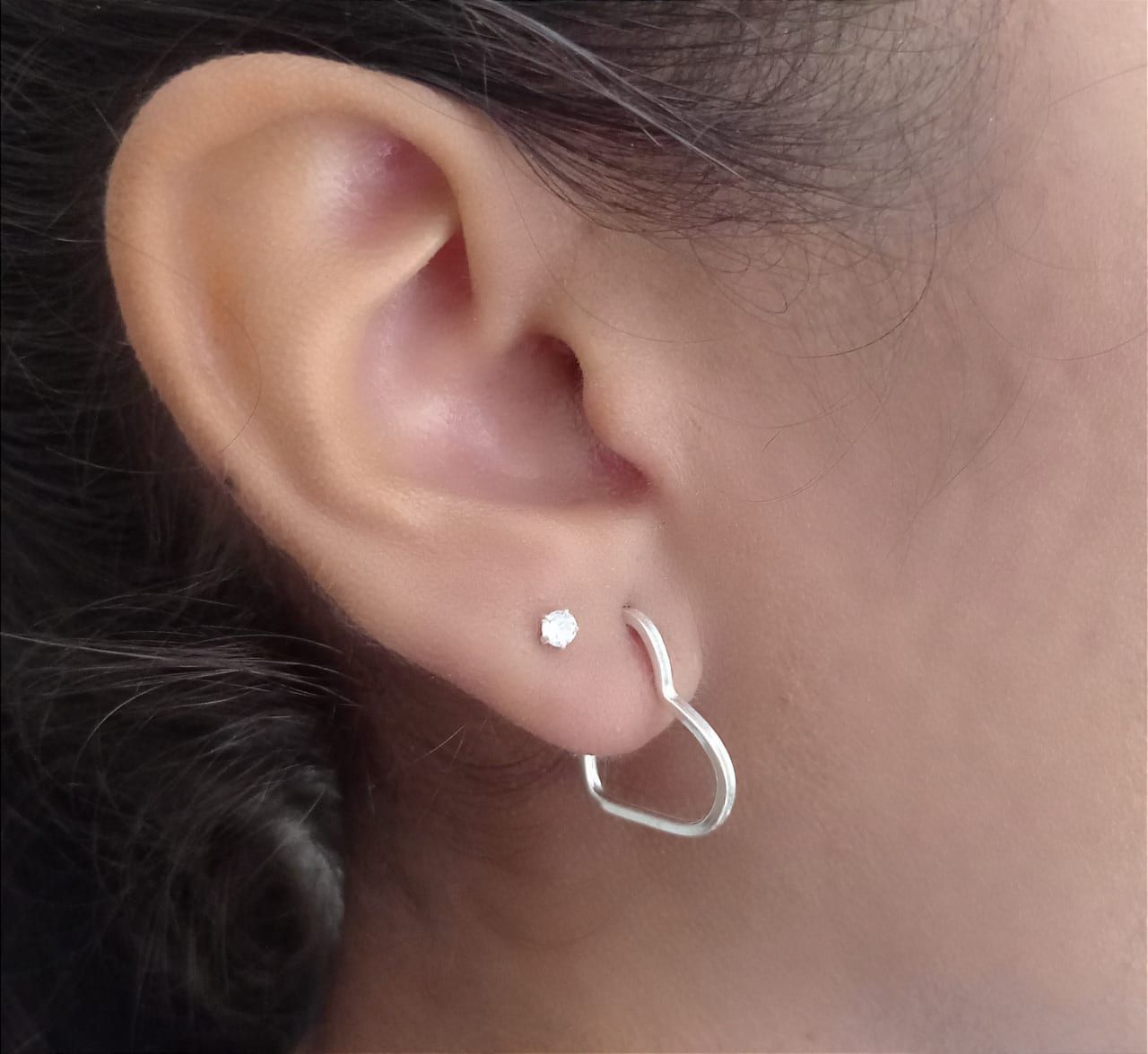 Argola média coração fio quadrado prata 925 Altura: 1,9cm Largura: 2cm Peso: 0,7g