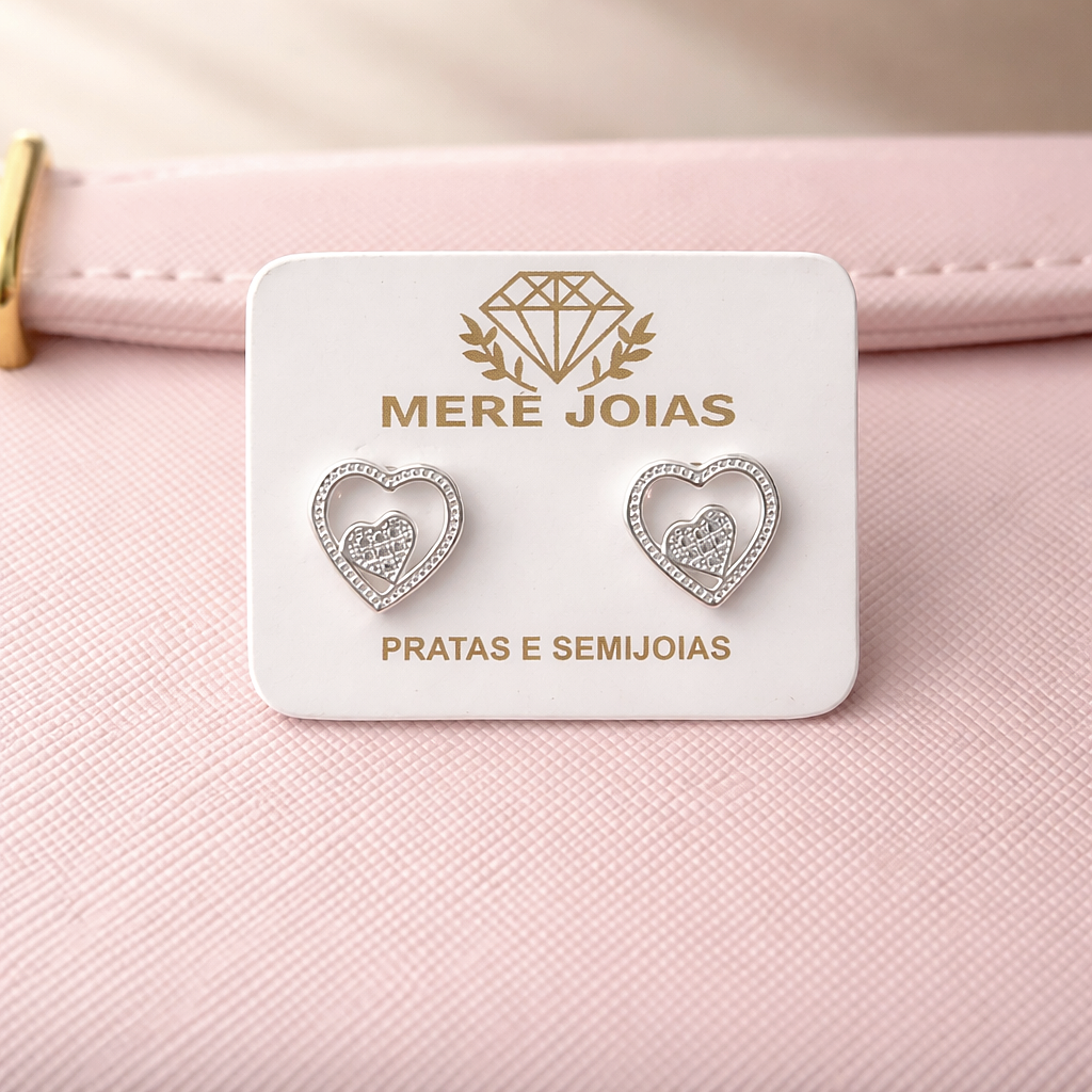 Delicado e cheio de detalhes, o brinco coração em prata 925 oferece brilho e resistência para quem busca uma joia elegante e durável.