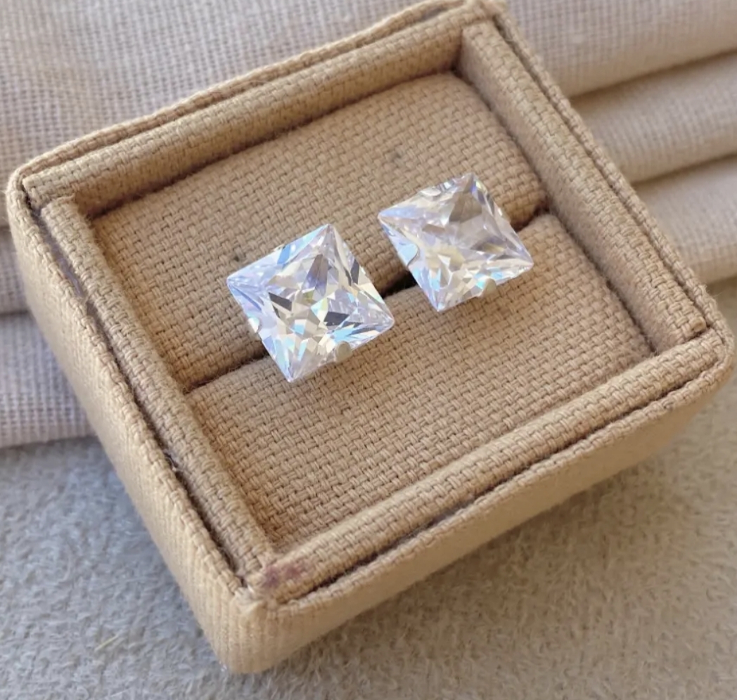 Brinco par com pedra de zircônia quadrada em prata 925, pronto para uso.