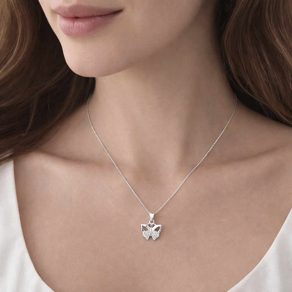Colar com pingente borboleta cravejada com microzirconias prata 925