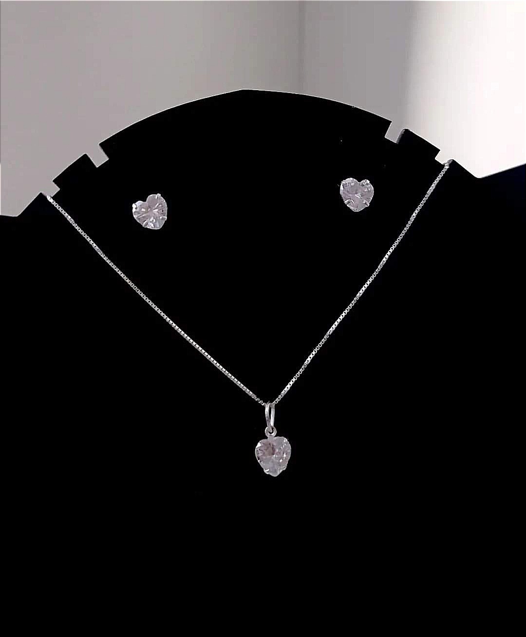 Conjunto coração com pedras zircônia prata 925