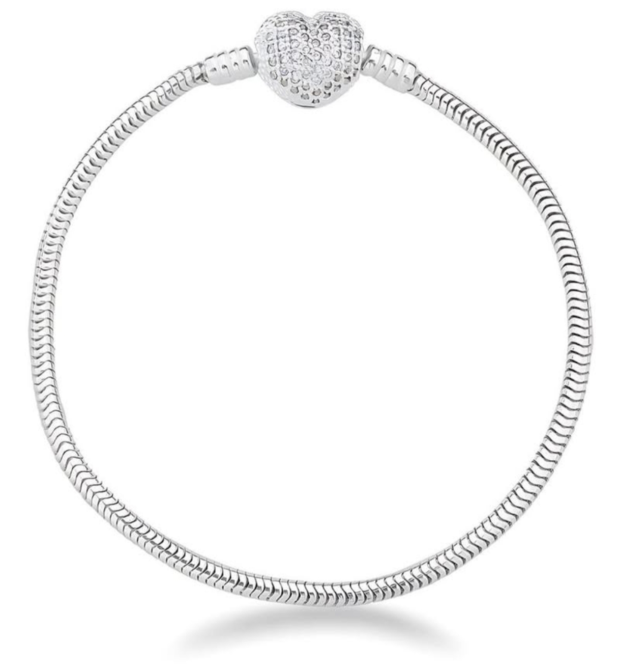 Pulseira para berloques de coração cravejado com escrita prata 925